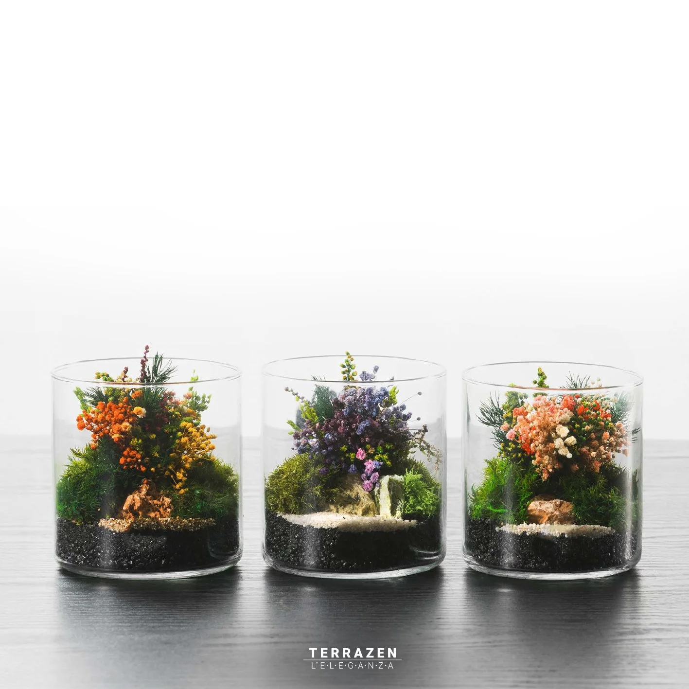 A harmonious blend of moss, lichens, and forest florals encapsulated in glass.