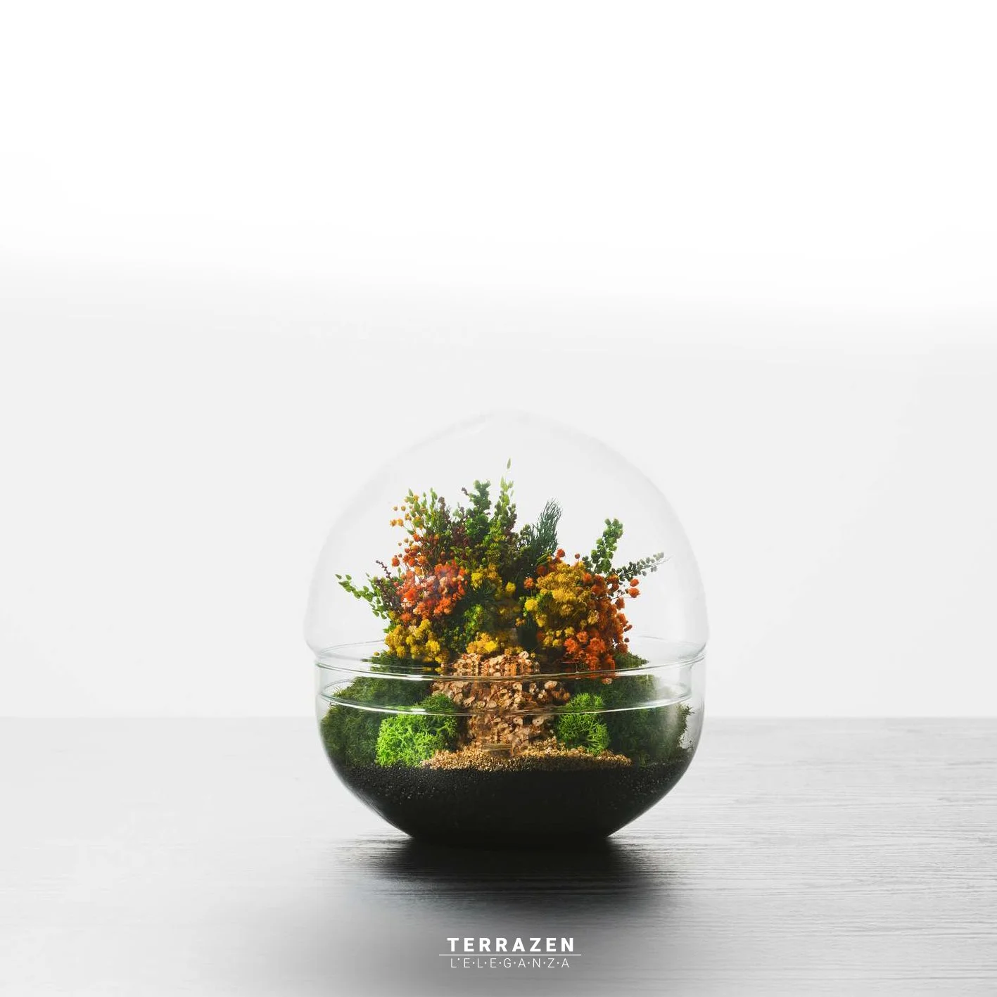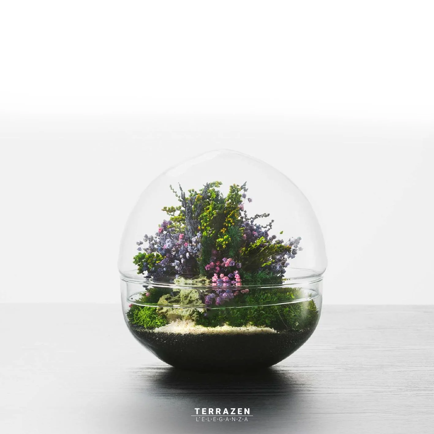 An immersive botanical sphere, where preserved moss and florals recreate untouched landscapes.